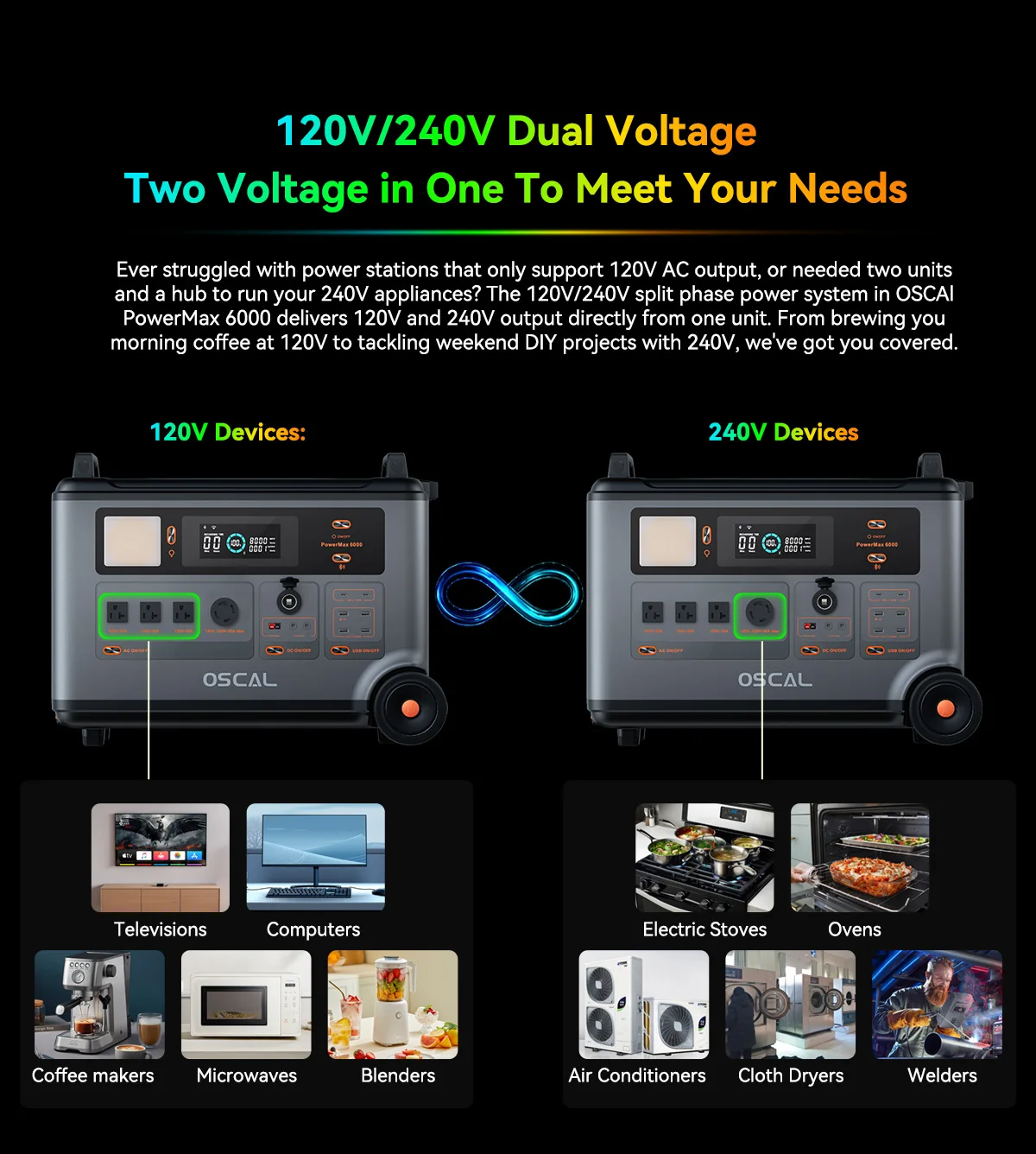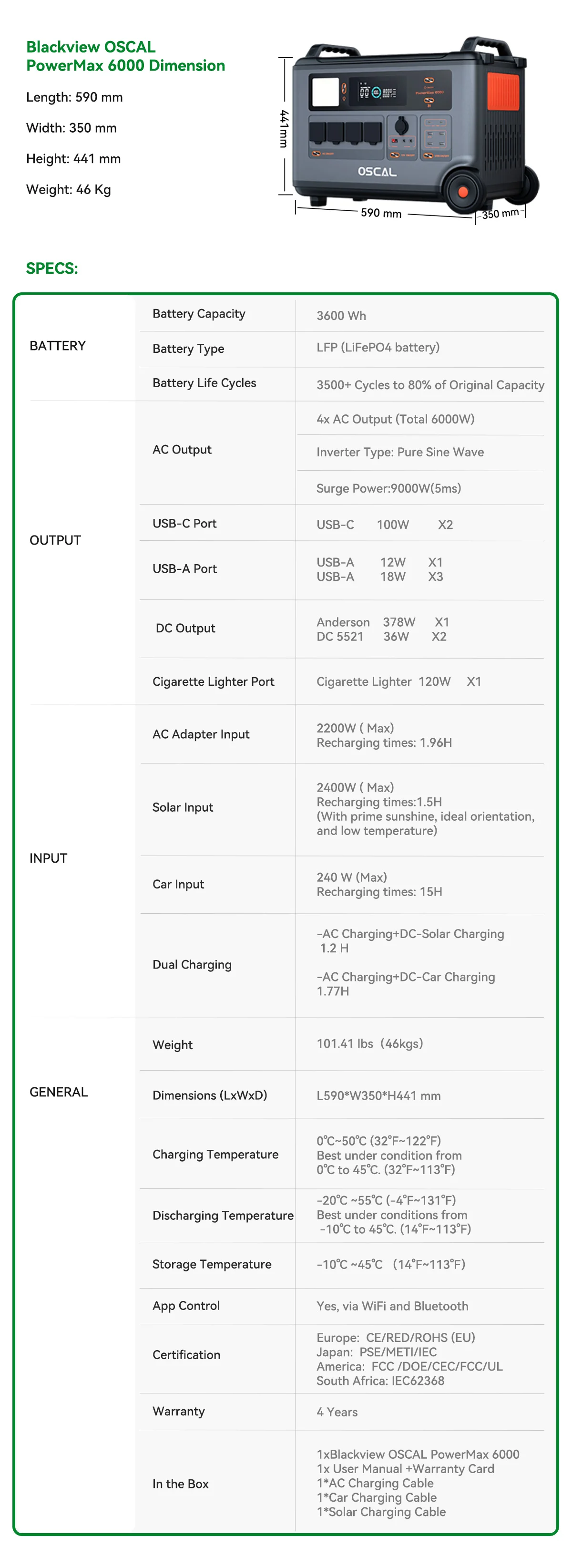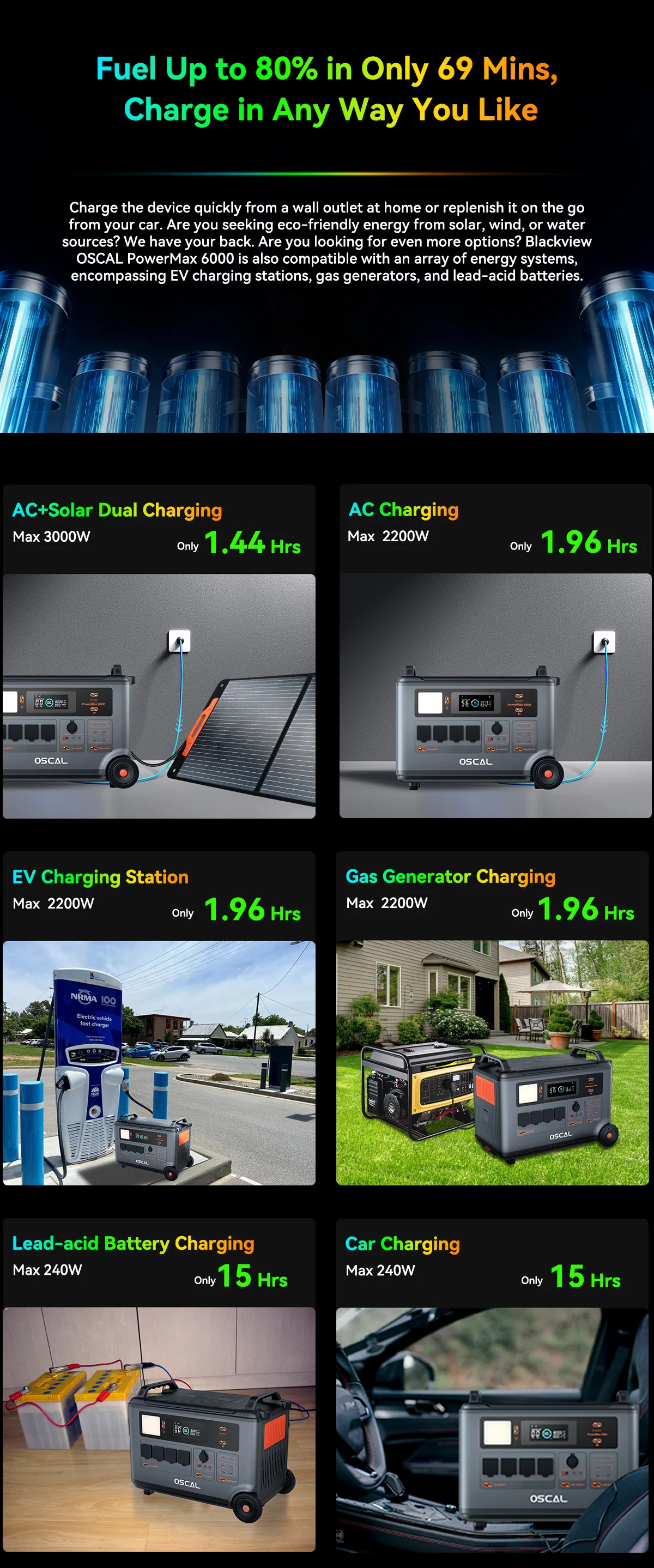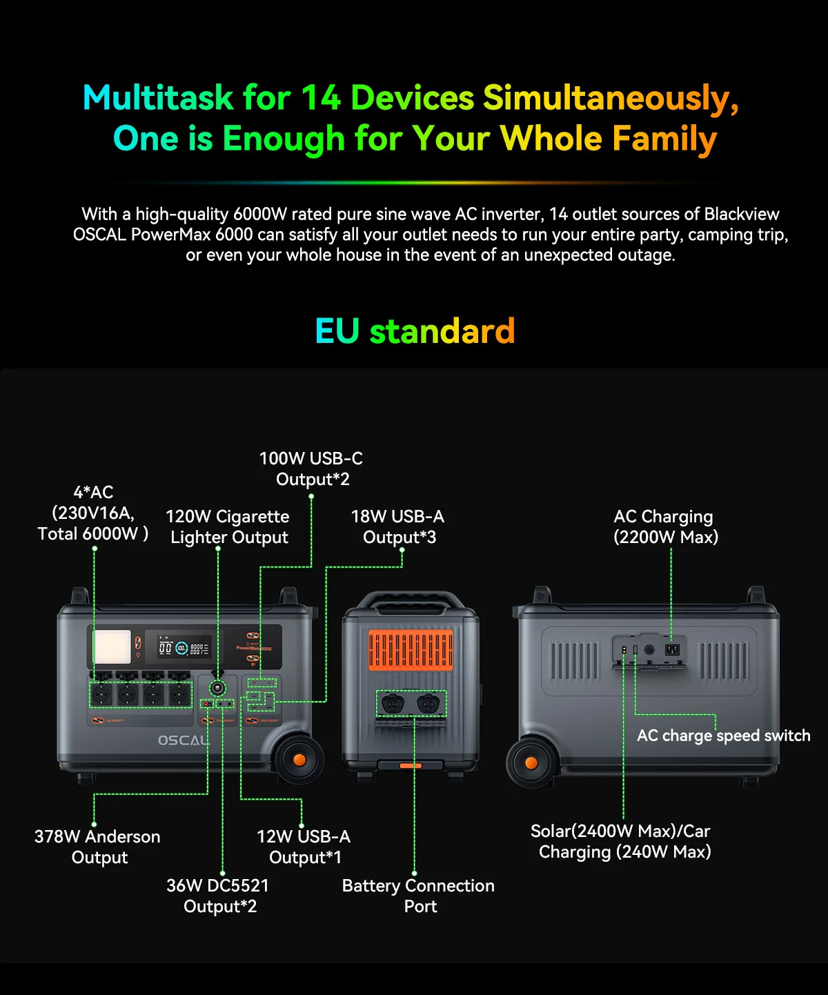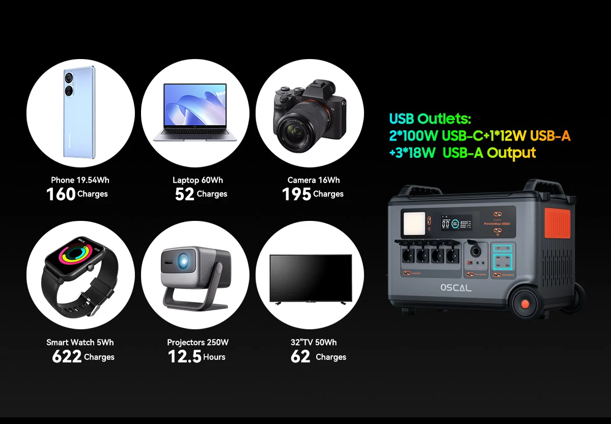 Blackview OSCAL PowerMax 6000 Portable Power Station 57600Wh Max Battery 120V/240V