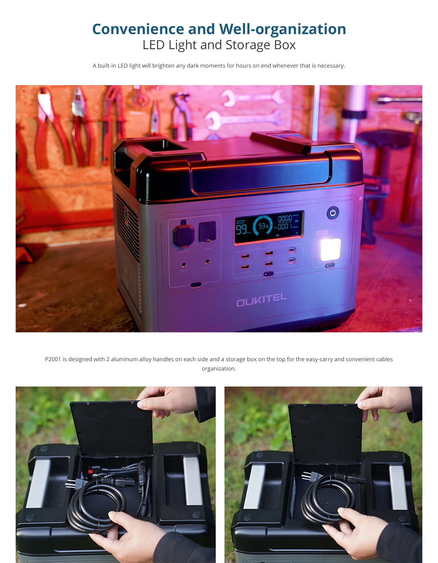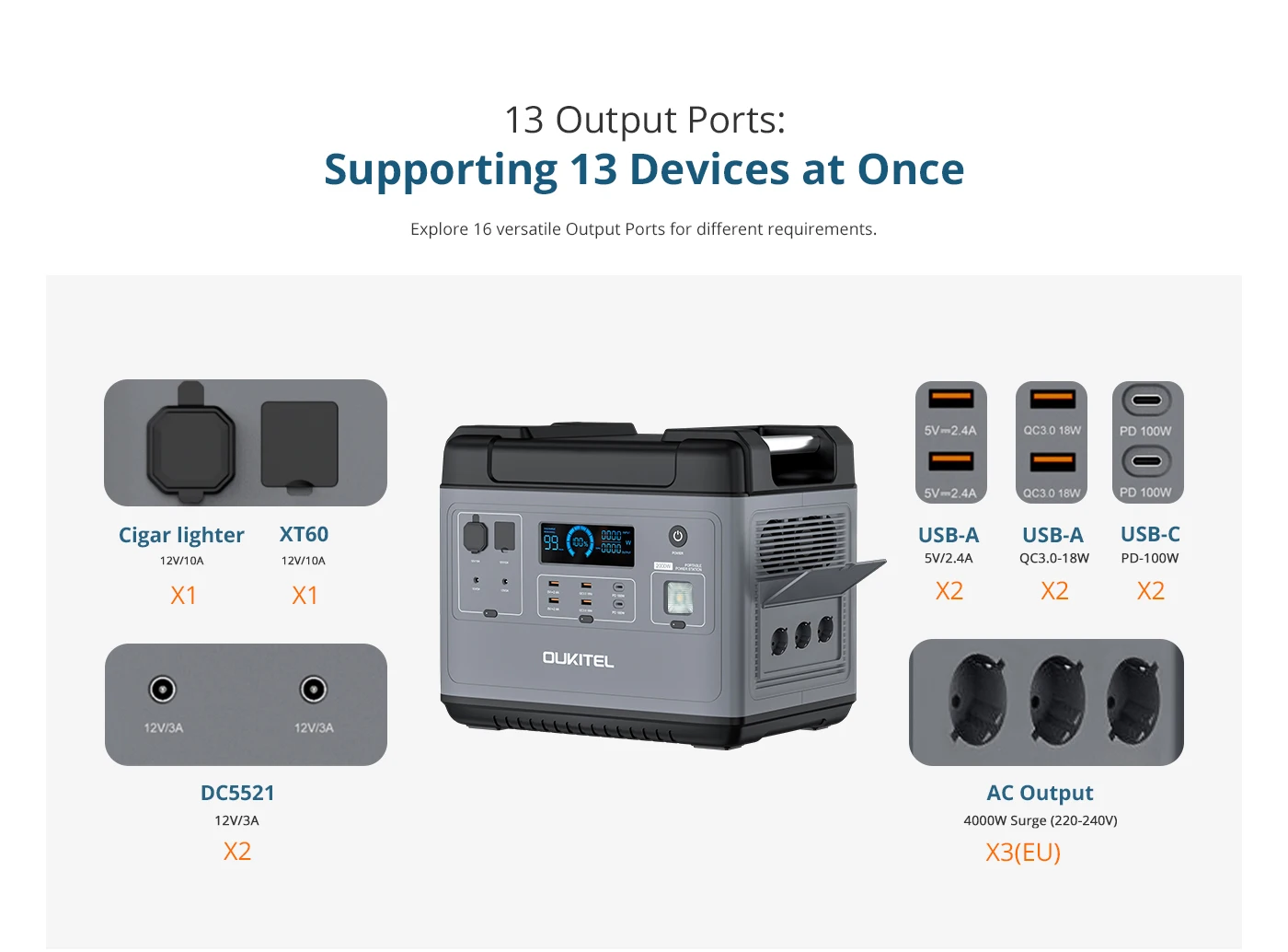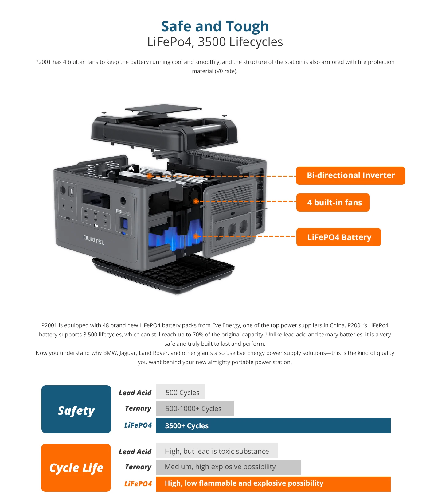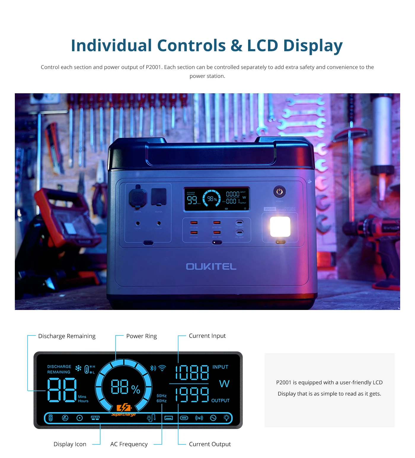 Oukitel P2001 Plus Portable Powerstation 2400W Support 220v UPS Fast Charging Surge.