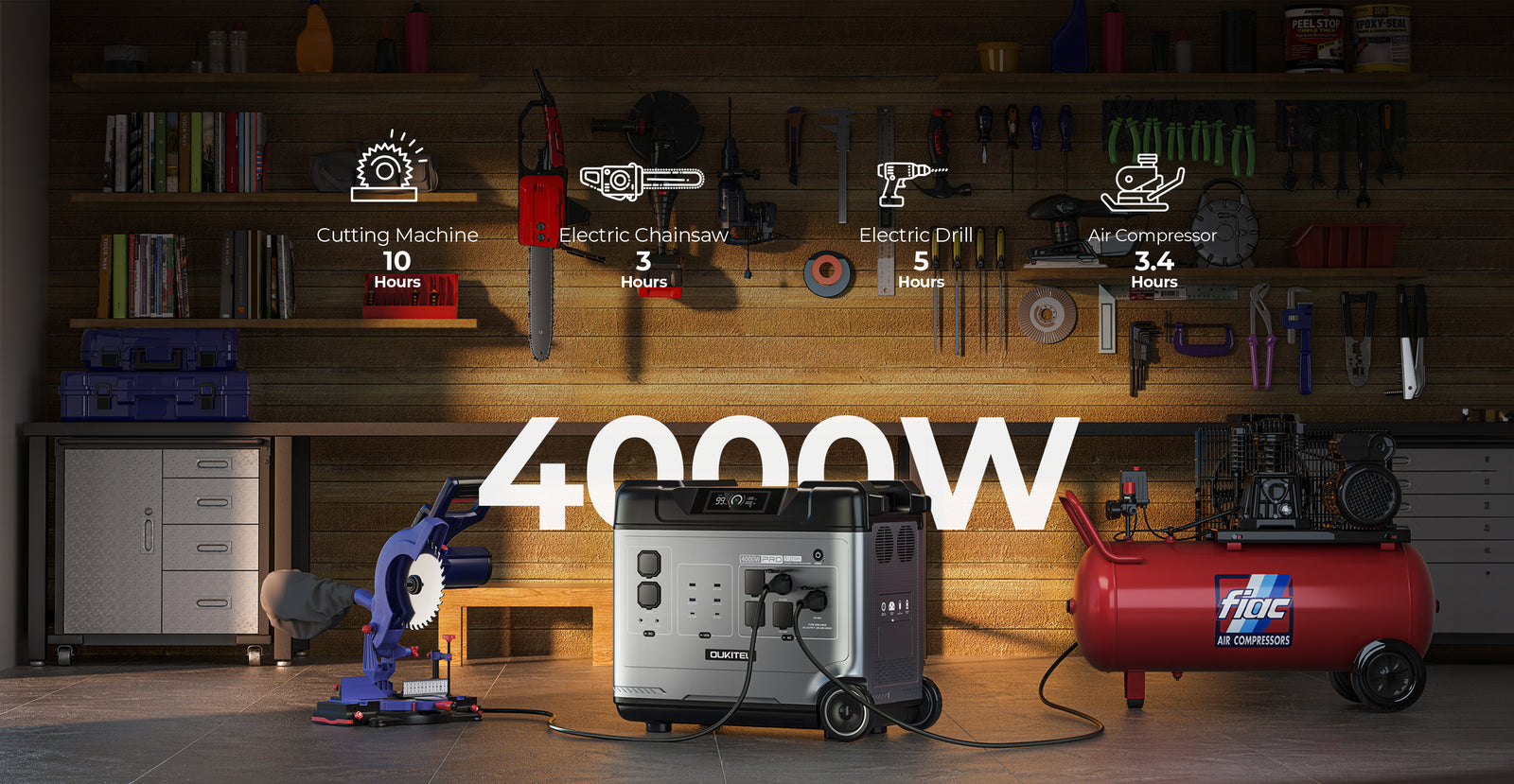 ⚡ 4000W AC Output – Handles heavy-duty power tools without overload