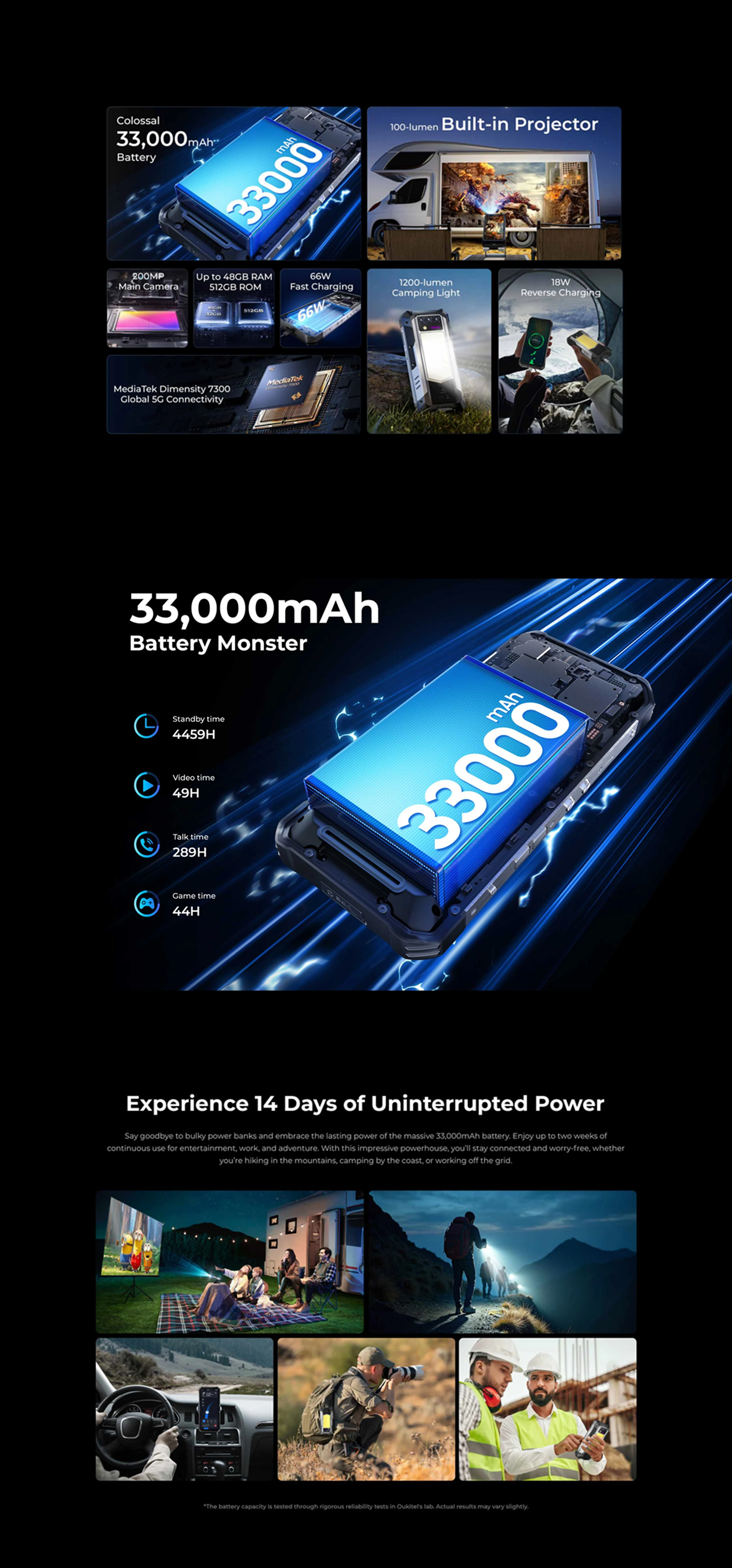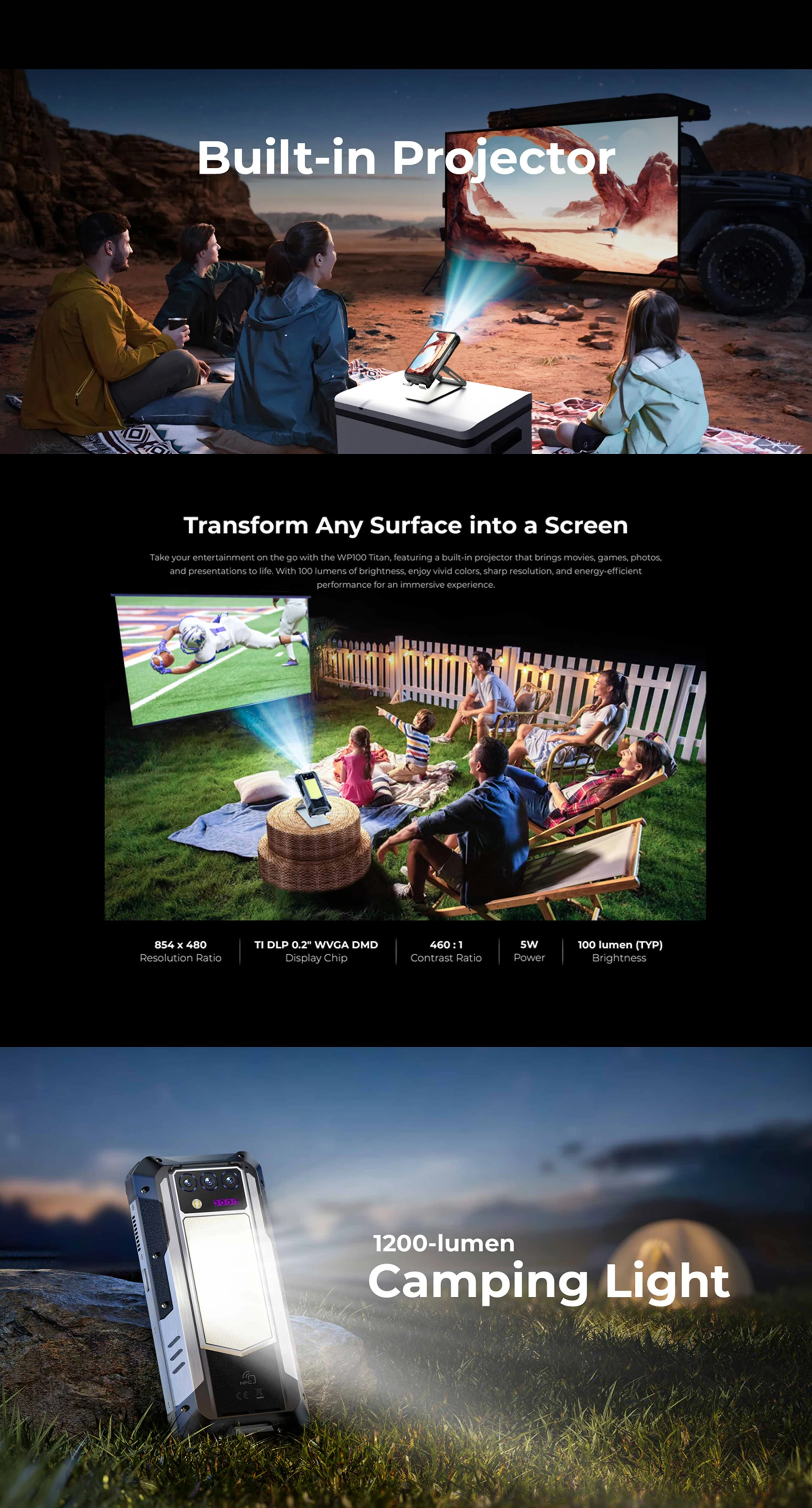 Oukitel WP100 Titan Projector phone 33000 mAh 100Lumen
